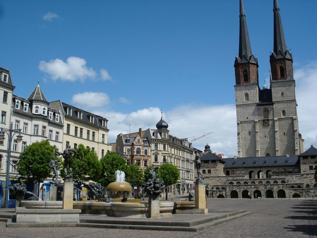 Natürlich haben wir auch die interessante Lage direkt vor dem Westeingang der Marienkirche. Diese überblickt den Hallmarkt, dem Ursprung der Stadt Halle, wo seit alter Zeit die Sole zu Salz verarbeitet wurde.