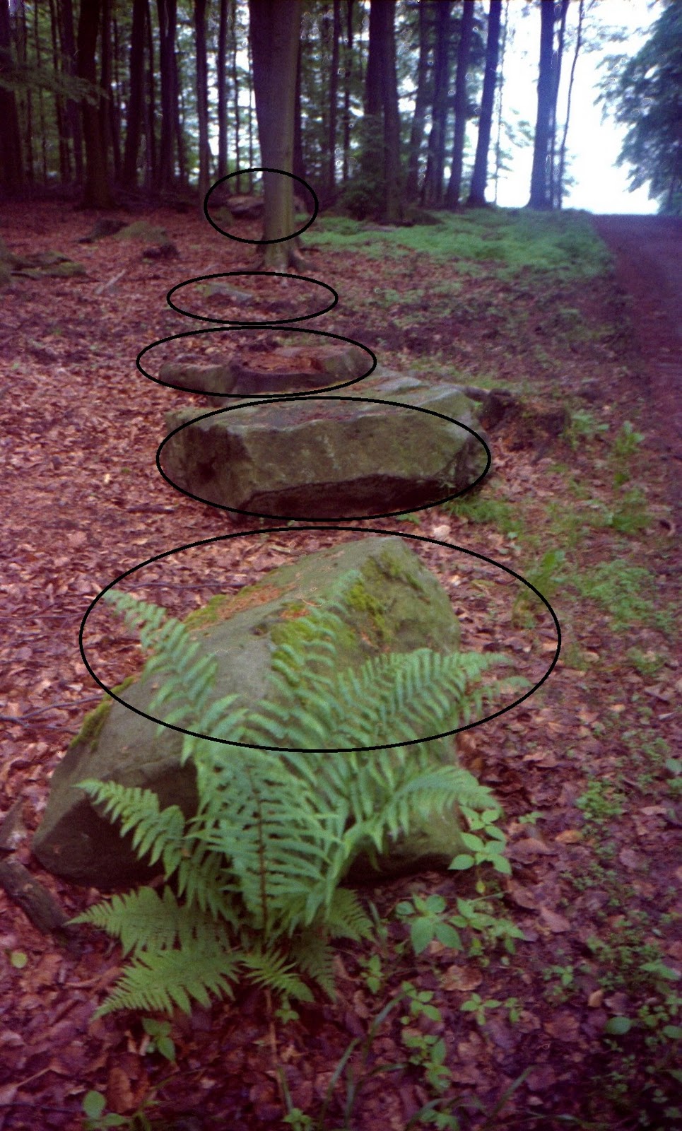 Weitestgehend zerstörte »Hünengräber«, einst aus den gleichen Steinbrocken gebaut, beweisen, dass vor 5500 Jahren emsige »Steinzeitmenschen« sehr aktiv waren. Aus der gleichen Epoche – davon bin ich überzeugt – stammen auch die Steinreihen.