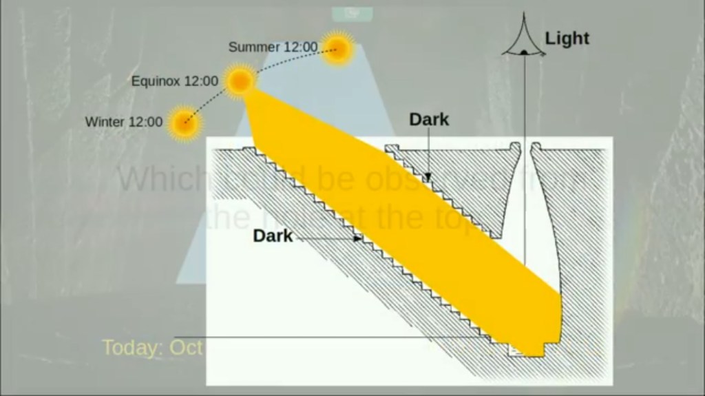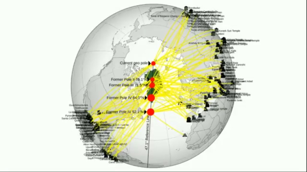 War es vielleicht eine andere Kultur? Das folgende Video legt nahe, dass die Ausrichtung der Anlage an einem älteren geographischen Nordpol ist und dass diese Struktur daher eher 220.000 – 240.000 Jahre alt sein könnte!