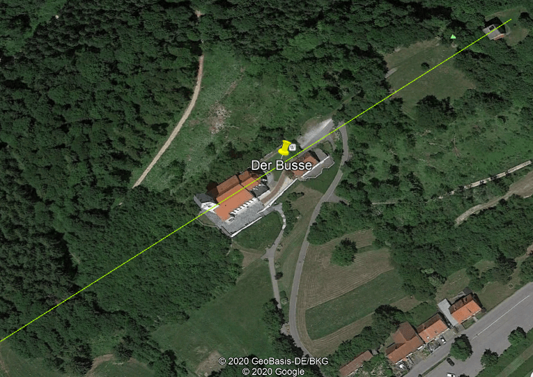 Eigenartig ist auch, dass die Kirche auf dem Felssporn des Bussen nur in dieser Ausrichtung gebaut werden kann, denn der Felssporn selbst ist an dieser Sommersonnenwendenaxe ausgerichtet.