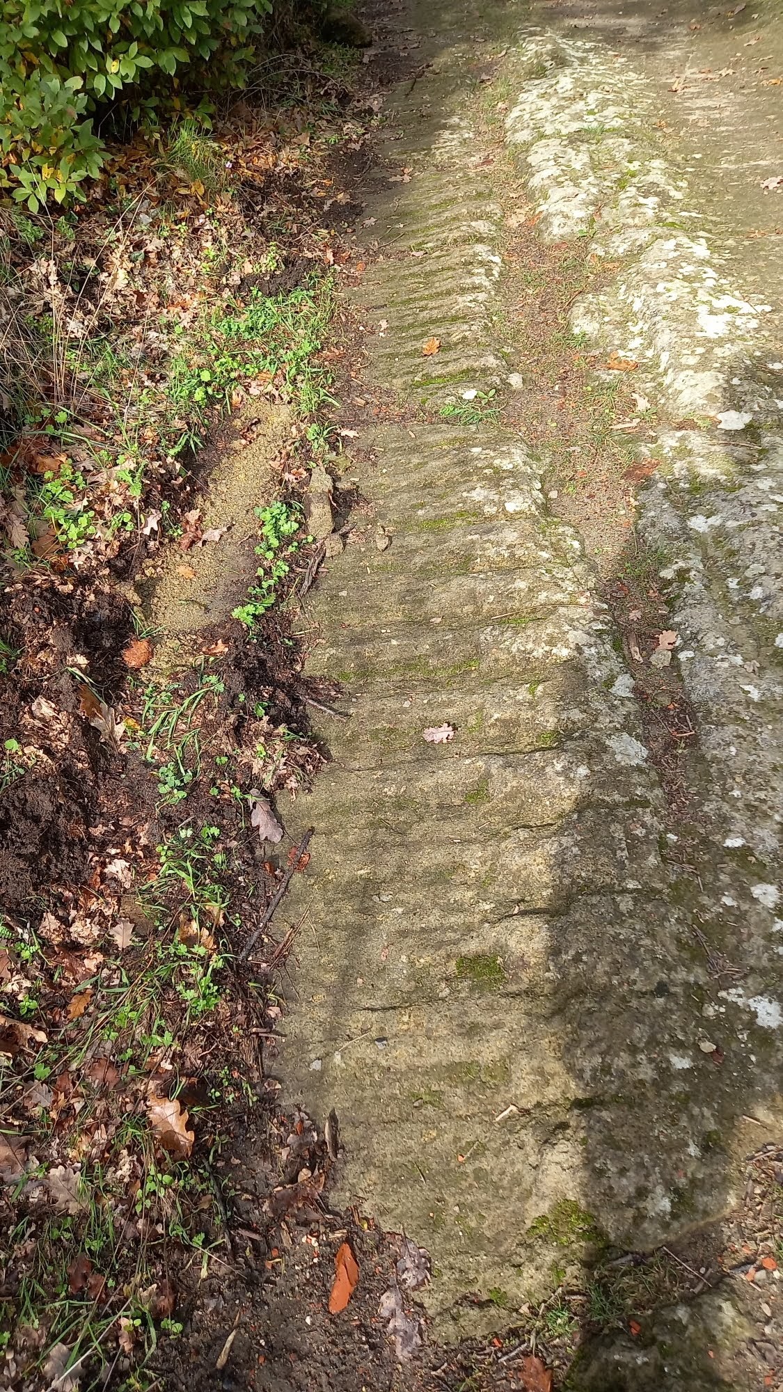 Es sei auch noch die seltsame, in Stein gehauene, Straße zu nennen. Diese ist ca. 500 m vom Stufenfels entfernt. Sehr merkwürdige Rinnen und regelmäßige Spuren. Sonderbar.