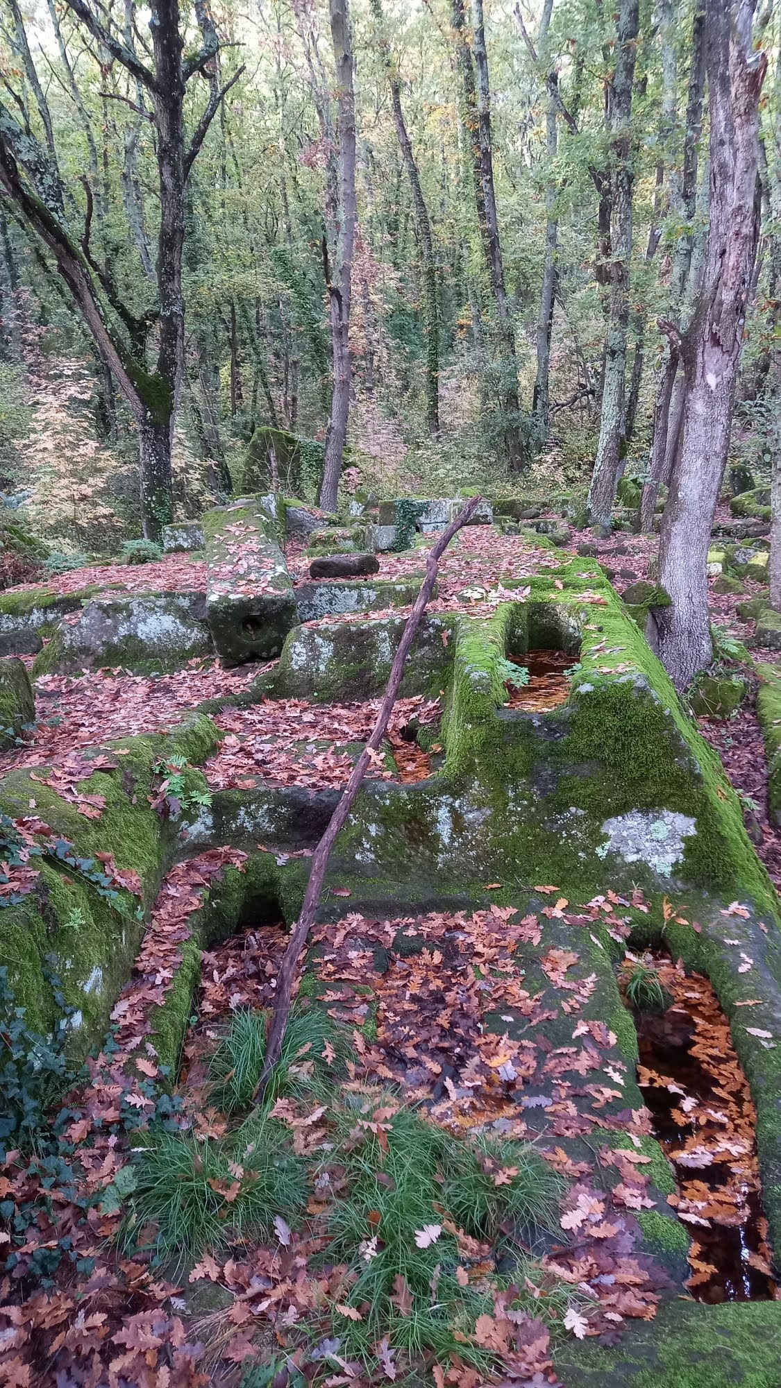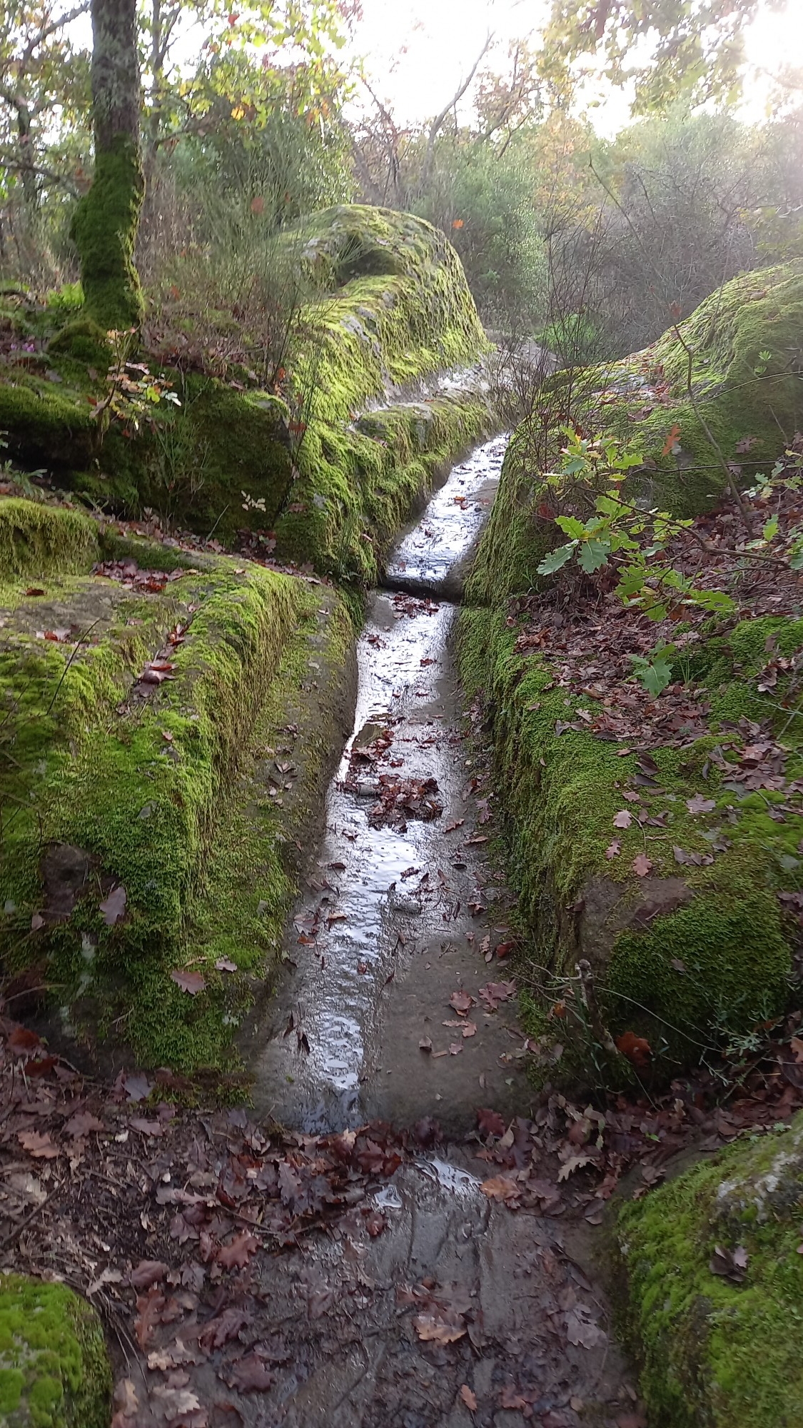 Und immer wieder tauchen Rinnen auf. Auch die Zuwege zu der Anlage zeigen Rinnen. Hatte Wasser hier eine Bedeutung? Ist es vielleicht doch eine Etruskerstätte? War das Wasser kultisch oder praktisch verwendet worden?