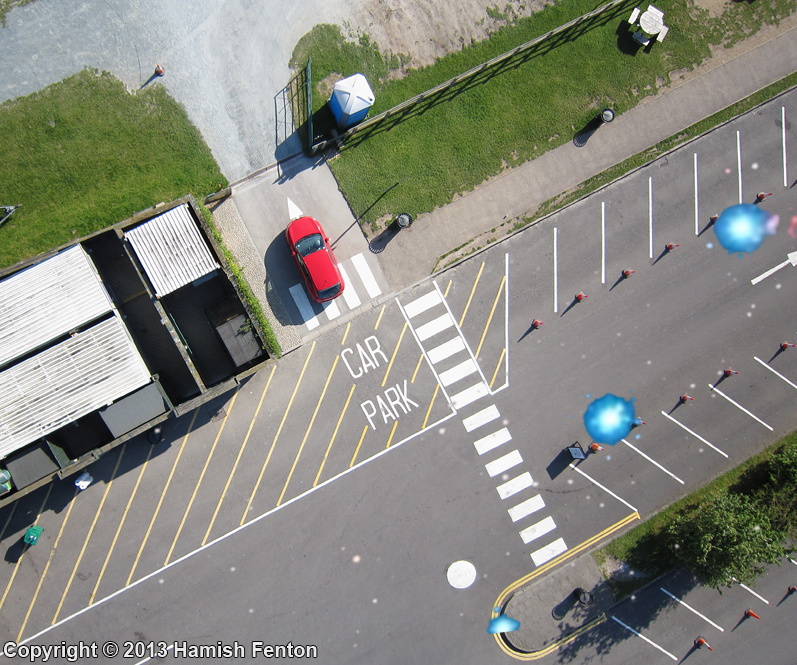 Aber passen diese Löcher überhaupt zum Gürtel des Orion? Wir vergleichen und legen den Gürtel des Orions über die Lochmarkierungen auf dem alten Parkplatz.