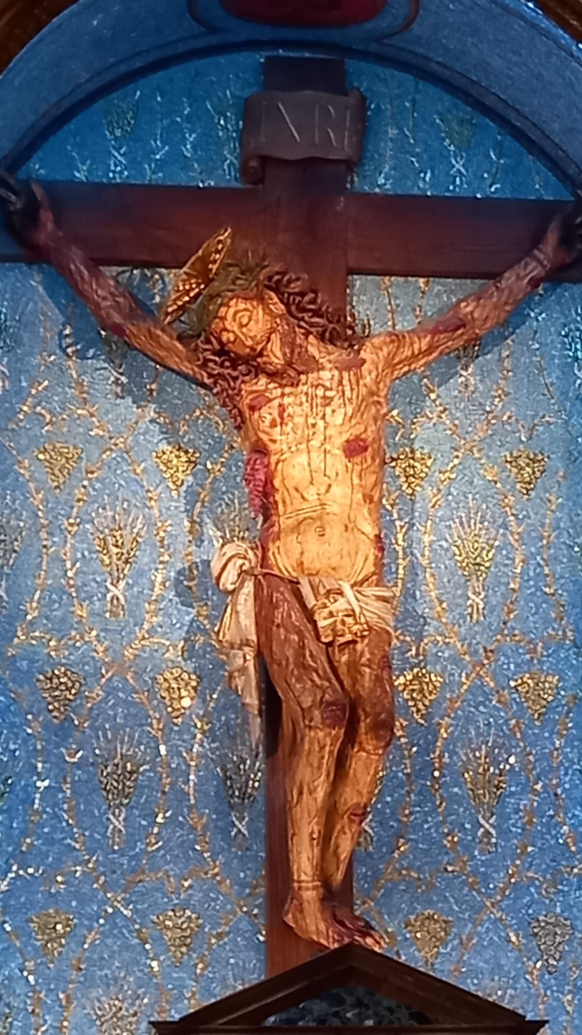 Das kleine Städtchen Nemi ist außerdem bekannt für seine wilden Walderdbeeren und eine wundersame Darstellung von Jesus am Kreuz, welche Päpste einlädt und auf die Knie bringt. Hier sehen wir Jesus mit einem Gesichtsausdruck von freudigster Erlösung – so wie nach einem Orgasmus.